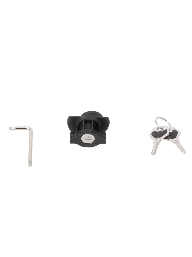 - Zamek zabezpiecza pokrywę kufra przed otwarciem oraz blokuje kufer na stelażu