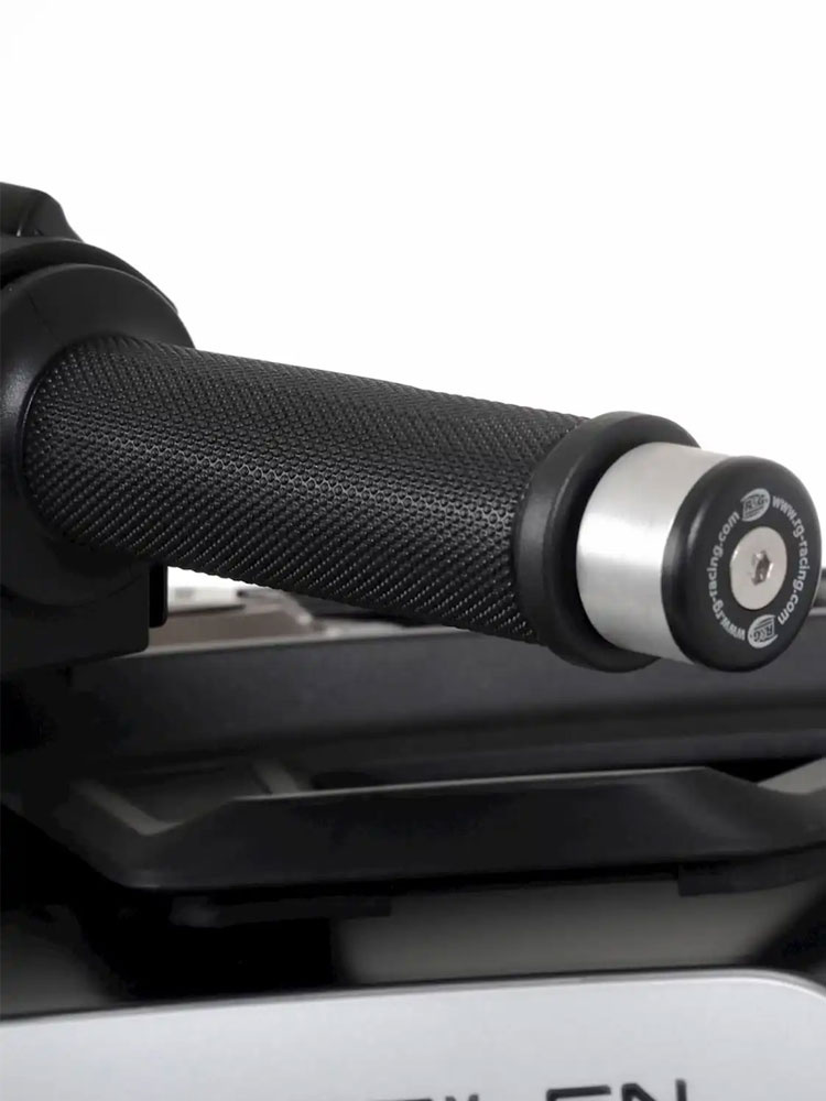 Koncówki kierownicy motocyklowej R&G Husqvarna Svartpilen/ Vitpilen 401 (20-23)/ Svartpilen 125 (21-23), KTM 390 Adventure (20-24) srebrno-czarne