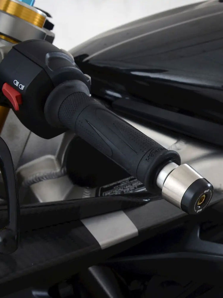 Koncówki kierownicy motocyklowej R&G Racing Triumph Daytona Moto2 765 (20) srebrno-czarne