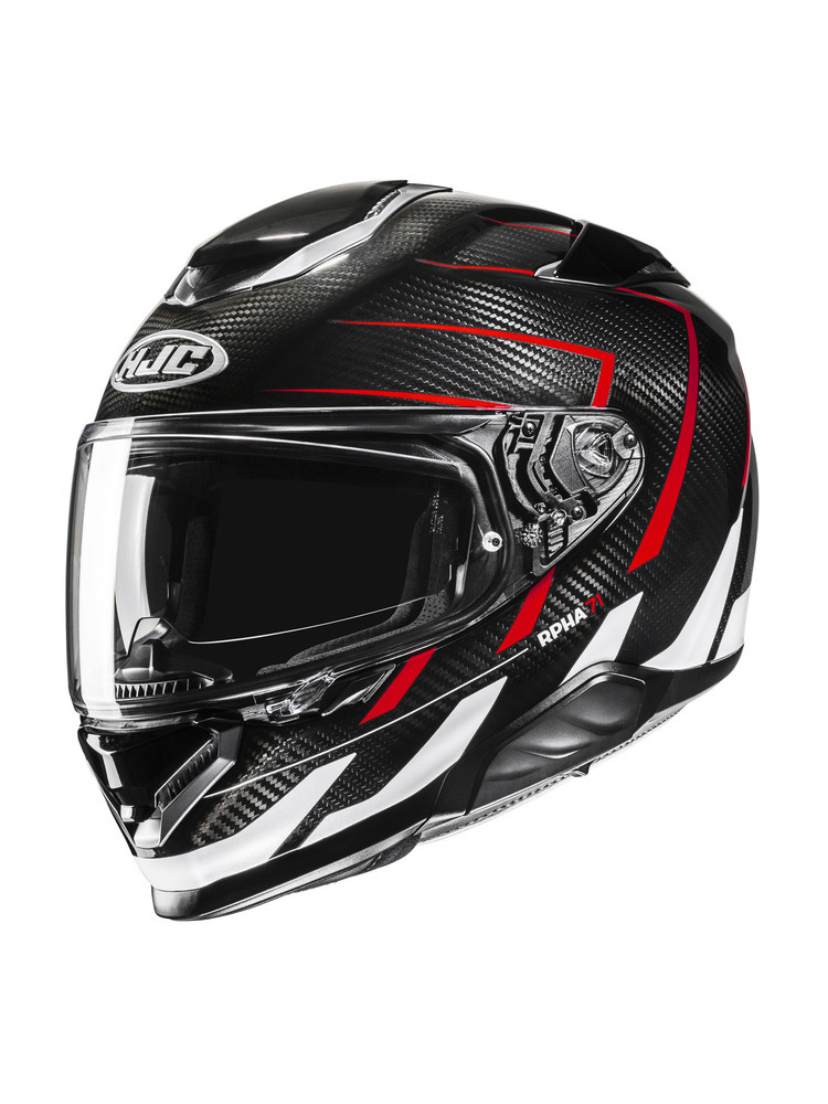 Kask integralny RPHA 71 Carbon, to następca bestsellerowego kasku motocyklowego RPHA 70. W odróżnieniu od swojego poprzednika, skorupa w modelu RPHA 71 Carbon została opracowana na bazie kompozytu PIM Evo oraz Carbonu. W ten sposób skorupa kasku oferuje lekkość i niezwykły poziom wytrzymałości. Technologia CFD nadaje skorupie właściwości aerodynamiczne, dzięki czemu kask będzie miał stabilną pozycję na głowie użytkownika, nawet przy wysokich prędkościach. Omawiana skorupa produkowana jest w czterech rozmiarach dla optymalnego dopasowania. Wyposażony w powłokę Anti-Fog wizjer, w połączeniu z regulowaną blendą przeciwsłoneczną zapewnia doskonałą widoczność w niemal każdych warunkach, niezależnie od tego czy podróżujemy, czy w nocy. Kask integralny HJC RPHA 71 Carbon jest gotowy do montażu komunikatora drogowego HJC Smart II, a także jest przyjazny osobom, które preferują jazdę motocyklem w okularach. Komfort termiczny wewnątrz kasku zapewniają rozmieszczone strategicznie otwory wentylacyjne. Dbanie o higienę w kasku integralnym RPHA 71 Carbon jest bardzo proste, a zarazem niezwykle przyjemne, gdyż zastosowana wyściółka jest w pełni wyjmowana i można ją oddać do prania po długiej wyprawie motocyklowej.