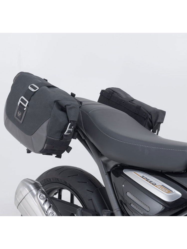 Zestaw: sakwa boczna Legend Gear LC1 + LC2 ze stelażami SW-Motech Triumph Scrambler 400 X (24-)/ Speed 400 (24-) czarno-brązowe [poj.: 9,8l + 13,5l]