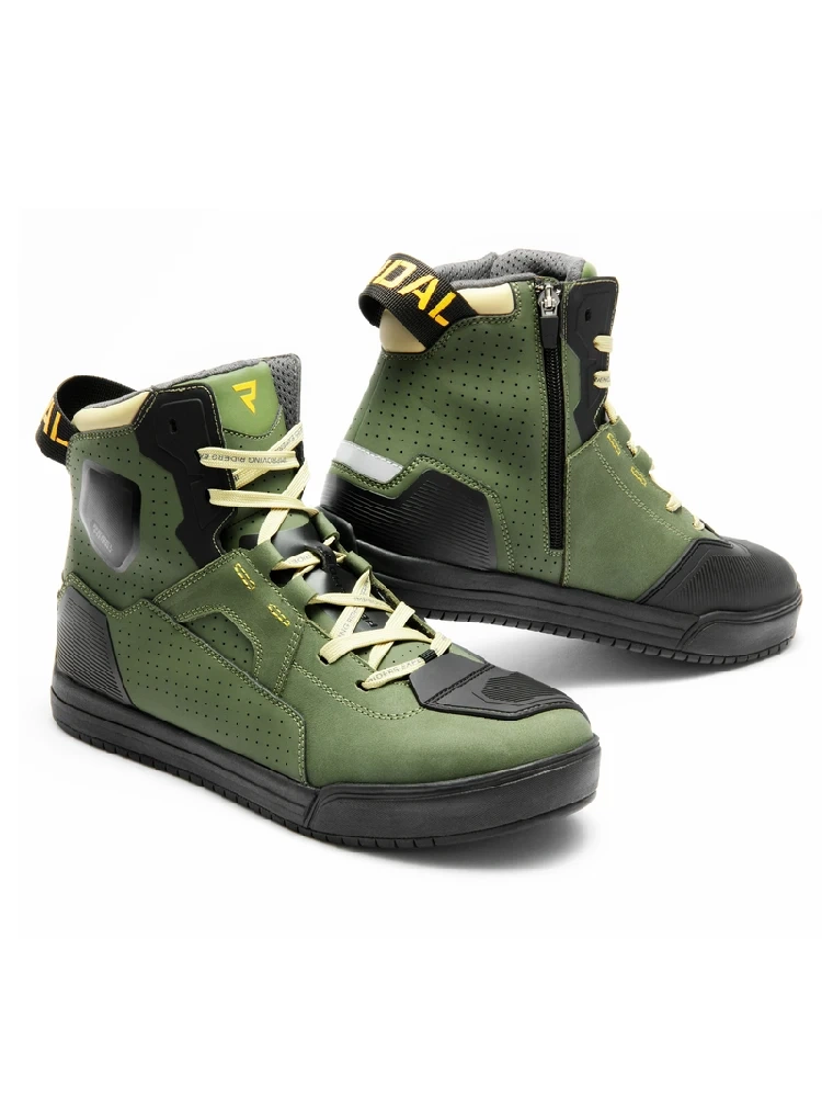 Buty motocyklowe Rebelhorn Vandal II zostały zaprojektowane z myślą o motocyklistach ceniących wszechstronność oraz innowacyjne rozwiązania. Te miejskie buty wykonano z wysokiej jakości skóry bydlęcej i wytrzymałej mikrofibry, co zapewnia nie tylko doskonałą ochronę, ale także nowoczesny, uniwersalny wygląd. Idealnie sprawdzą się zarówno na motocyklu, jak i podczas codziennych aktywności, łącząc funkcjonalność z elegancją. Bezpieczeństwo to podstawa każdego modelu obuwia od marki Rebelhorn. Vandal II spełniają standardy certyfikatu CE EN13634:2018, co oznacza, że zostały dokładnie przetestowane pod kątem ochrony przed urazami. Wzmocnienia kostek oraz dodatkowe osłony z materiału TPU w okolicach dźwigni zmiany biegów sprawiają, że buty motocyklowe te doskonale radzą sobie z wymaganiami miejskiej jazdy. Podszewka z oddychającego poliestru 3D Mesh skutecznie odprowadza wilgoć i zapobiega przegrzaniu stopy, nawet podczas długich tras. Perforowane panele po obu stronach obuwia wspierają cyrkulację powietrza, co znacząco podnosi wygodę noszenia w ciepłe dni. Wkładka z piankowego materiału, anatomicznie dopasowana do kształtu stopy, niweluje drgania, zwiększając stabilność i komfort jazdy. Rebelhorn Vandal II to także przykład doskonałej ergonomii. Miękka górna krawędź buta nie powoduje otarć, a zamek błyskawiczny ułatwia szybkie zakładanie.