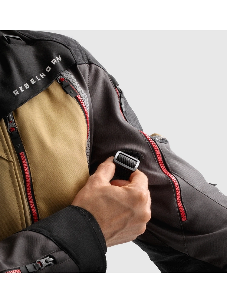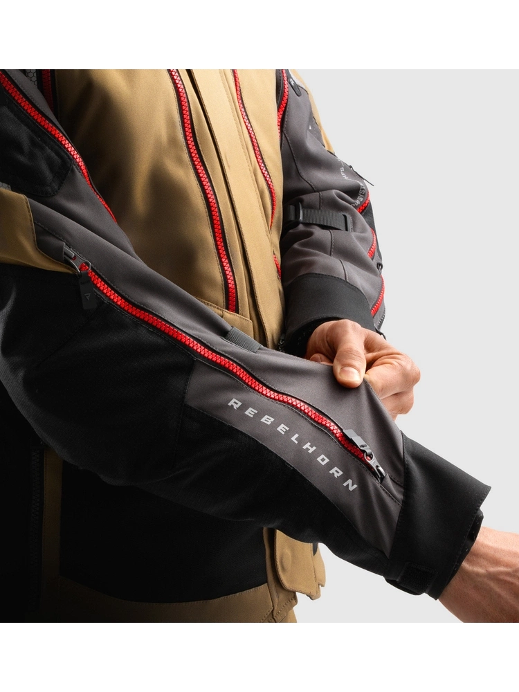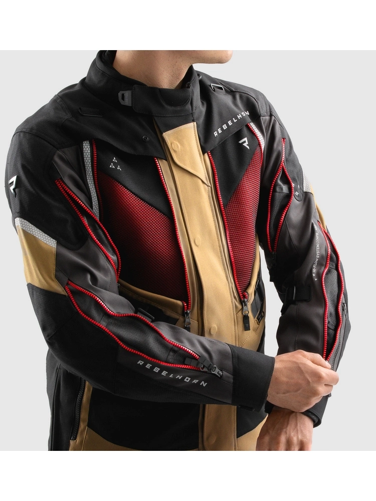Kurtka motocyklowa tekstylna Rebelhorn Hardy 3.0 brązowo-szaro-czerwona
