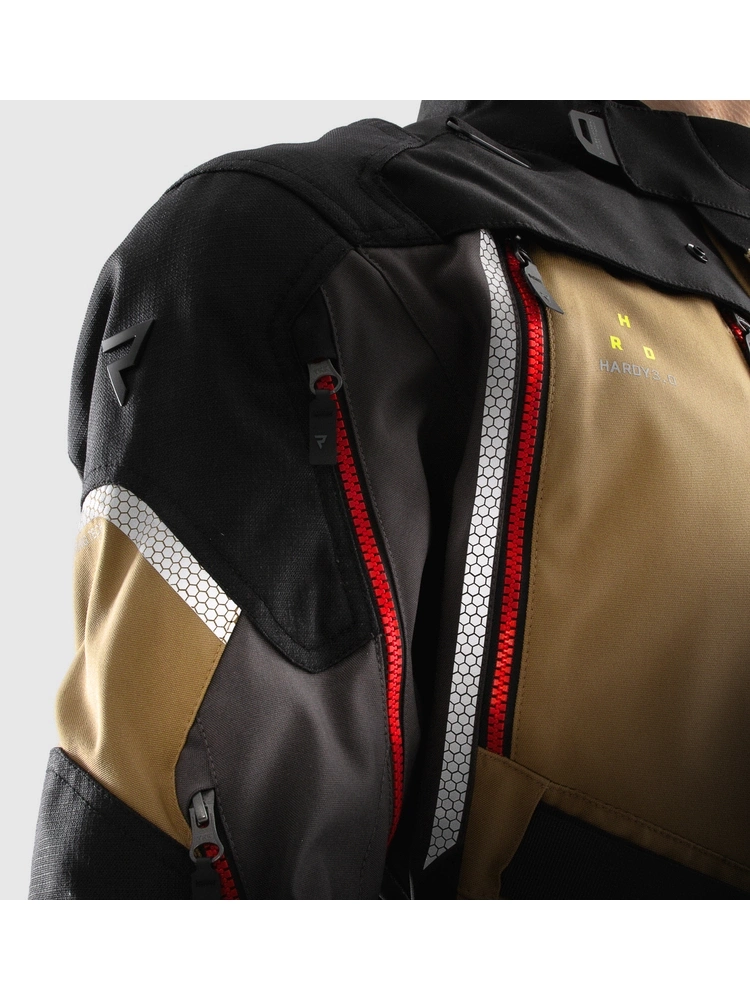 Kurtka motocyklowa Rebelhorn Hardy 3.0 wyróżnia się kompletnym zestawem ochraniaczy Armanox na łokcie, ramiona i plecy, które spełniają europejskie standardy bezpieczeństwa, czego efektem jest certyfikat CE (Poziom 2). Kamizelka odblaskowa w zestawie znacząco poprawia widoczność motocyklisty po zmroku. Nie mniej istotny jest komfort użytkowania.