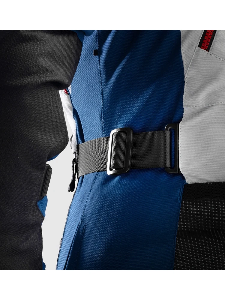 Kieszenie rozmieszczone w strategicznych miejscach pozwalają na przechowywanie najpotrzebniejszych rzeczy podczas jazdy. Regulacje w pasie, bicepsie, przedramionach i biodrach umożliwiają indywidualne dopasowanie do sylwetki.