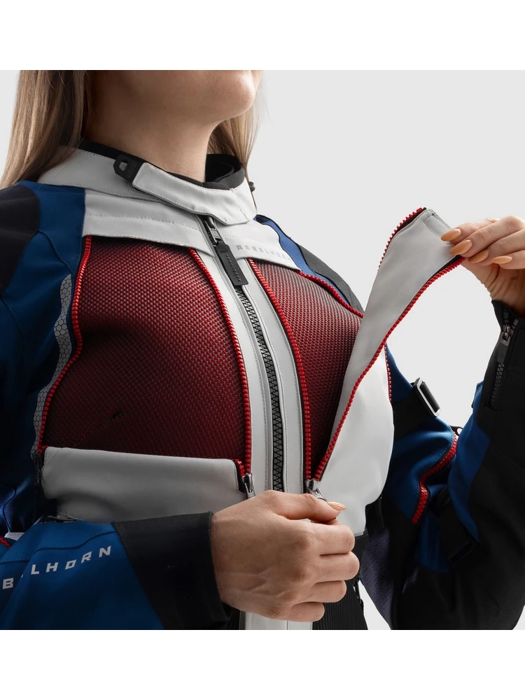 Kurtka motocyklowa damska tekstylna Rebelhorn Hardy 3.0 niebiesko-szaro-czerwona