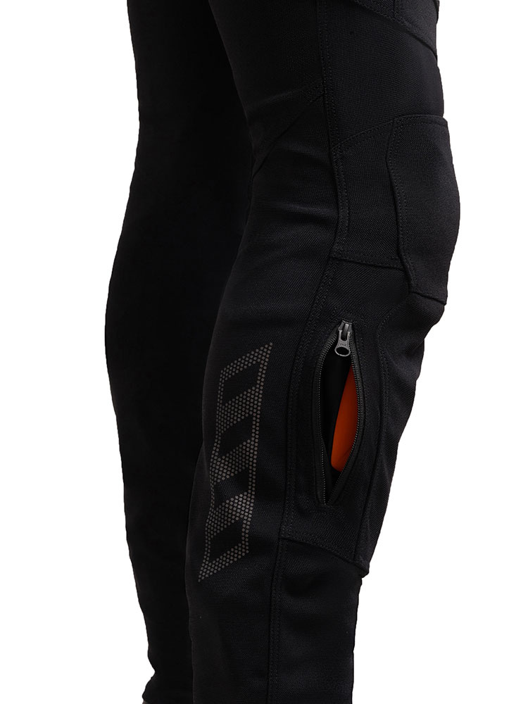 - Możliwość montażu protektorów bioder i kolan Rukka D3O LP2 z certyfikatem CE EN 1621-1:2012, Poziom 2