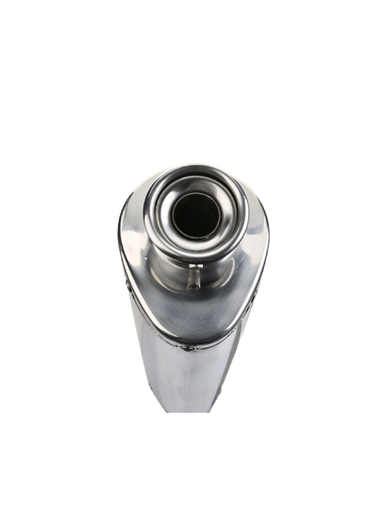 - Tłumik motocyklowy wykonany z ręcznie polerowanej stali nierdzewnej AISI304