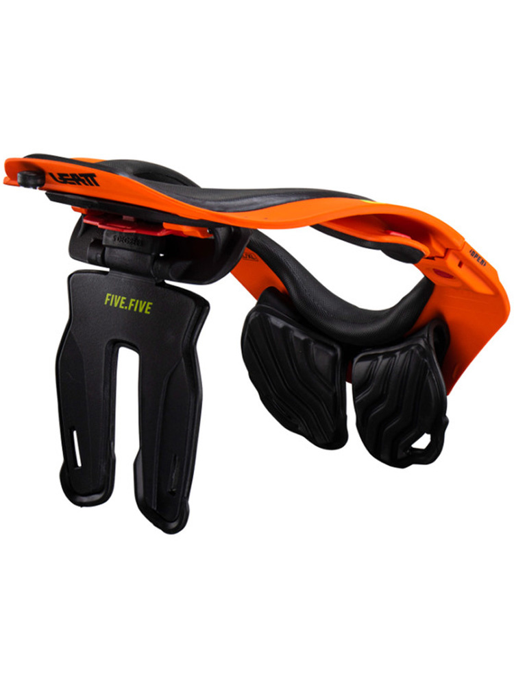 Leatt 5.5 to innowacyjny stabilizator karku który ma na celu ochronę delikatnej części szyi poprzez przejmowania energii powstałej podczas uderzenia. Specjalne wycięcie na obojczyk zostało zaprojektowane tak, aby utrzymać obręcz kasku z dala od wrażliwych części szyi jednocześnie zapewniając pełną swobodę ruchu podczas jazdy. Platforma z matrycą kompozytową pozwala na efektywniejszą redukcję oraz absorpcję sił działających na kark oraz obojczyk. Tylny, składany protektor kręgów piersiowych zapobiega nadmiernemu obciążeniu pleców oraz przystosowany został do pracy z naturalnymi ruchami ciała w celu poprawy komfortu jazdy. System SureFit umożliwia trzystopniową regulację. Modelowany, dzielony przód znacznie zwiększa komfort. Niskoprofilowy system z przyciskiem ułatwia zakładanie oraz zdejmowanie protektora. Wyściółka stabilizatora została skonstruowana w taki sposób, aby ułatwić czyszczenie zapobiegając ewentualnym uszkodzeniom.