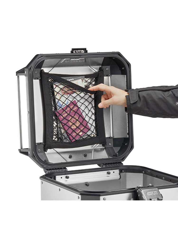 Utrzymaj idealny porządek w swoim kufrze dzięki wewnętrznej elastycznej siatce bagażowej GIVI z praktyczną kieszenią.