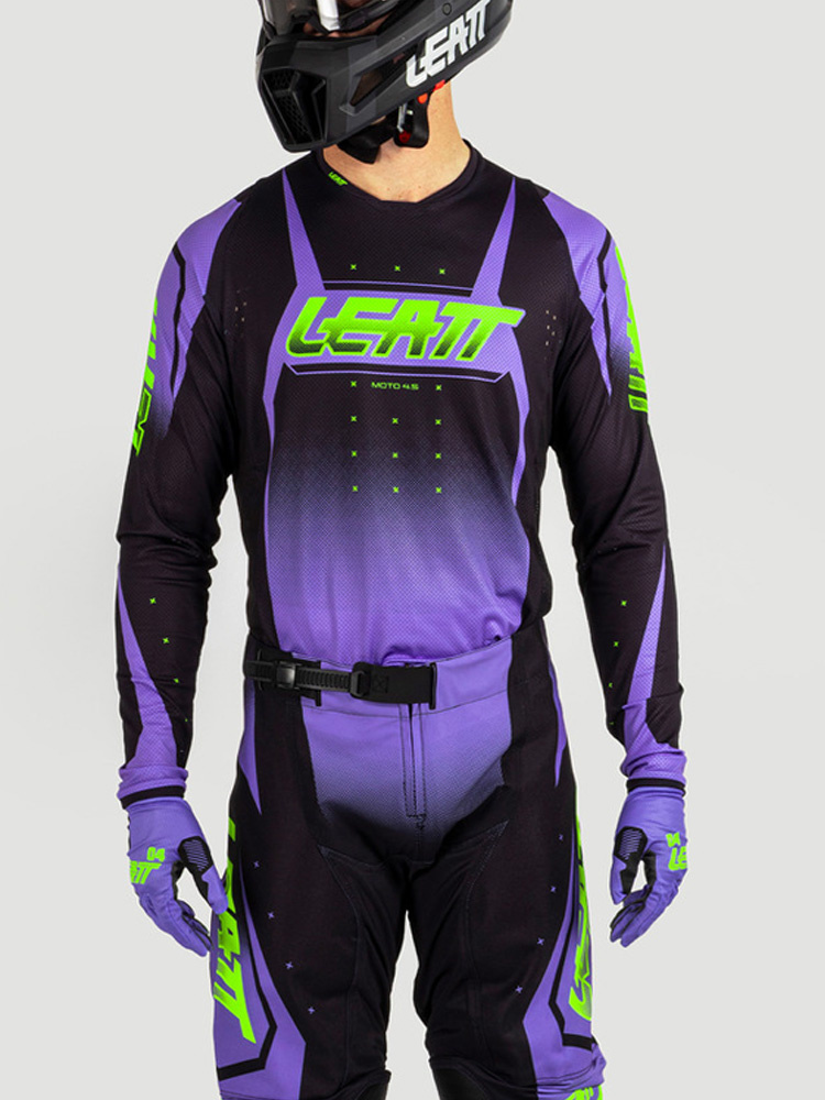 Bluza motocross Moto 4.5 Lite jest bardzo jakościowym oraz komfortowym produktem marki Leatt. Ten model ma klasyczny krój, jest wykonany z bardzo elastycznej siateczki MoistureCool 3D, czyli materiału zapewniającego przewiewność, przepływ powietrza - dzięki temu nadaje się do jazdy nawet w bardzo upalne dni. Moto 4.5 Lite jest bardzo wygodną bluzą, została ulepszona o mankiety ze stretchem i dodatkową wentylację dzięki panelom bocznym wykonanych z siateczki X-Flow. Dopasowany krój jest przeznaczony do noszenia tej bluzy enduro razem z buzerem / zbroją (lub bez) - zapewnia bardzo swobodne dopasowanie. Dodatkowo, ma silikonowy uchwyt do spodni, który sprawia, że nie będzie ona się wyślizgiwała. Bluza motocross Moto 4.5 Lite jest doskonałym wyborem dla każdego miłośnika jazdy w terenie - zarówno dla tego początkującego jak i bardziej doświadczonego motocyklisty.