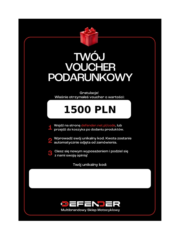 - Swoboda wyboru – pozwala na zakup dowolnych produktów z naszej oferty: akcesoriów, części, odzieży i wielu innych produktów!