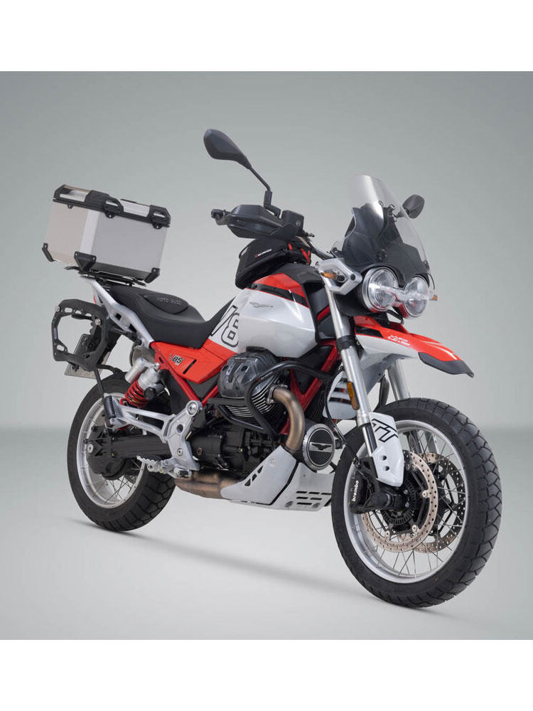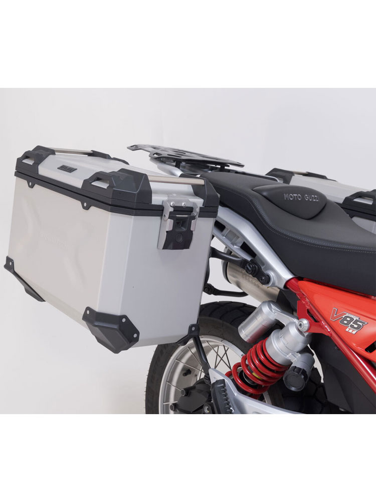 Zestaw: kufer centralny srebrny TRAX ADV + stelaż Adventure-rack SW-Motech Moto Guzzi V85 TT/ Travel (24-) [poj.: 38 L]