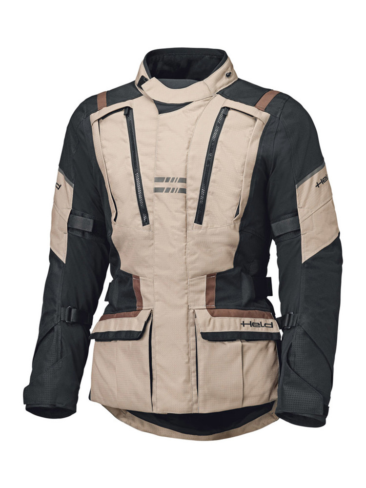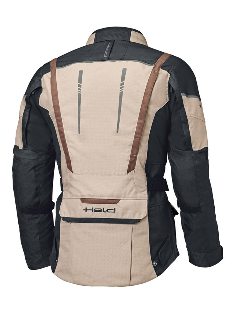 Kurtka motocyklowa tekstylna Held Hakuna Matata III sprawdzi się podczas jazdy na krótkie i długie dystanse. Technologia Clip-In marki Held, w którą wyposażono kurtkę umożliwia dopasowanie podpinek i innych warstw ocieplających, które zwiększą naszą wygodę latem oraz jesienią. Elementy odblaskowe zwiększają naszą widoczność w nocy i wieczorem. Materiał CorduraRipStop 500D zapewnia wytrzymałość i trwałość, dzięki czemu kurtka doskonale sprawdzi się w trudnych warunkach. Oddychająca, meshowa podszewka gwarantuje maksymalny komfort nawet podczas długich tras. Wyjmowana membrana Sympatex® jest wodoodporna i wiatroszczelna, dzięki czemu może być używana zarówno wewnątrz, jak i jako niezależna warstwa przeciwdeszczowa. Ochraniacze D3O® T5 EvoProX na ramionach i łokciach z certyfikatem EN 1621-1 poziom 2, są elastyczne podczas jazdy, a twardnieją w trakcie uderzenia pochłaniając w ten sposób siłę. Kieszeń na protektor pleców i klatki piersiowej umożliwia doposażenie kurtki poprzez dokupienie ochraniaczy. Liczne kieszenie na mapy, telefon, klucze ułatwią przewożenie rzeczy podczas krótkich i długich podróży. Kurtka motocyklowa tekstylna Held Hakuna Matata III ma system wentylacyjny z zamkami z przodu, z tyłu i na ramionach zwiększają optymalny przepływ powietrza.