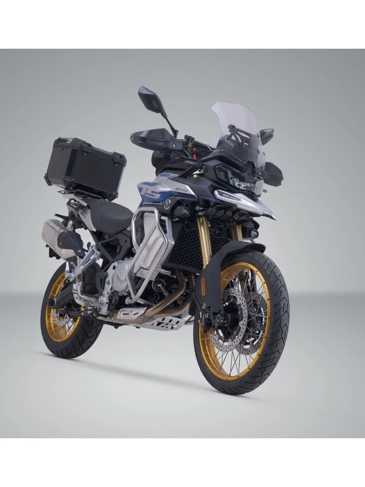 Kompletny zestaw, czyli wszystkie produkty pod jednym indeksem za pomocą których zamontujesz kufer centralny na swoim motocyklu. W skład tego zestawu wchodzą wszystkie produkty, tj.: kufer centralny TraX ADV, zamki do kufrów, płyta adaptacyjna, dedykowany do motocykla stelaż ADVENTURE-RACK. Przy rozwoju TraX ADV pojawiło się następujące wyzwanie. Zbudować kufry, które pokonają wszystkie przeszkody motocyklowej codzienności, lekkie i łatwe w obsłudze, po prostu dobre: od praktycznego zamka błyskawicznego, przez zdejmowalną pokrywę, po ergonomiczny uchwyt. TraX ADV łączą wysoką jakość z niską wagą. Ważą tylko od 4,6kg do 5,4 kg, czyli należą do grupy najlżejszych kufrów w swojej klasie.