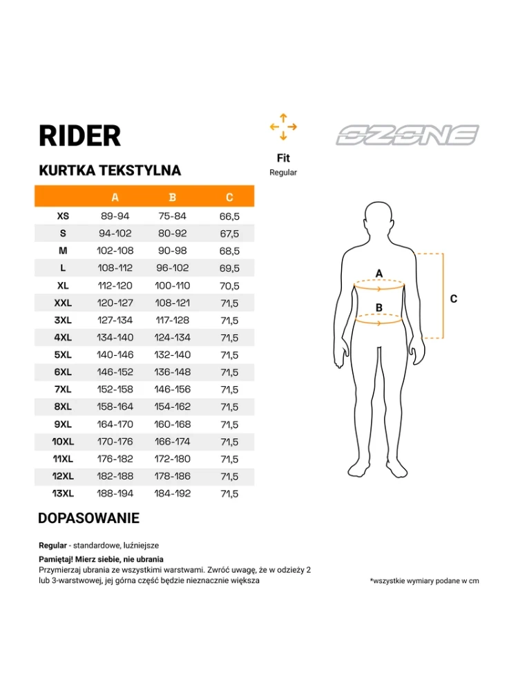 Rozmiar | Obwód w klatce piersiowej (cm) | Obwód w talii (cm) | Długość ramion (cm) |