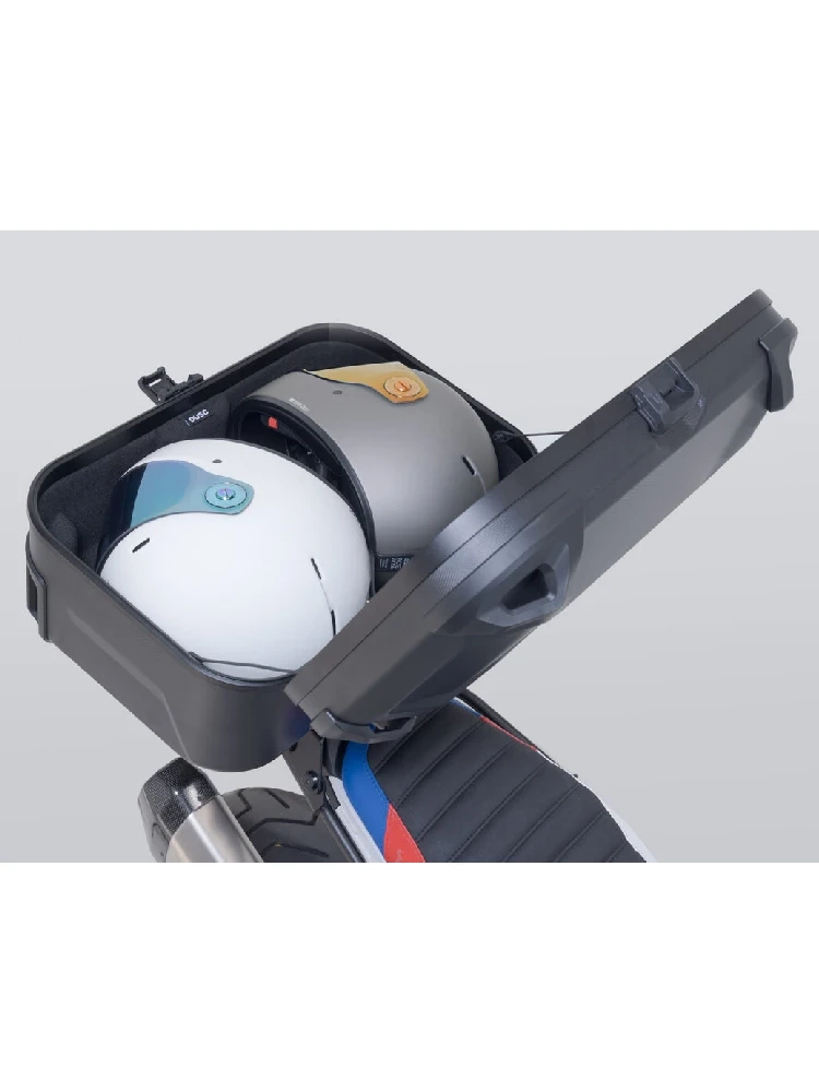 SW-Motech Dusc XL to wyjątkowo wytrzymały i funkcjonalny kufer centralny o pojemności 55 litrów, zaprojektowany z myślą o wymagających podróżach motocyklowych. Kufer Dusc XL charakteryzuje się solidną, wodoodporną obudową, która zabezpiecza przechowywane w nim przedmioty przed niekorzystnymi warunkami atmosferycznymi, takimi jak deszcz czy kurz. Wykonana z kompozytowej skorupy ABS o specjalnej strukturze 3D, obudowa ma grubość 3 mm, dzięki czemu jest odporna na uderzenia, zarysowania i wszelkie odkształcenia. ABS to materiał, który po ściśnięciu wraca do pierwotnego kształtu, zapewniając długotrwałe zachowanie wyglądu oraz ochronę zawartości. Dusc XL wyróżnia się lekkością (waży tylko 6,1 kg), co jest znaczącą zaletą względem kufrów aluminiowych. Wewnętrzna wkładka z pianki EVA pozwala na bezpieczny transport kasków, amortyzując wszelkiego rodzaju wstrząsy. Zamek kufra, wykonany z tworzywa sztucznego wzmocnionego włóknem szklanym, skutecznie blokuje pokrywę oraz mocuje kufer na stelażu, chroniąc zawartość. Dodatkowo, ergonomiczne uchwyty, narożniki i zawiasy z wytrzymałego tworzywa sztucznego zwiększają komfort przenoszenia kufra.