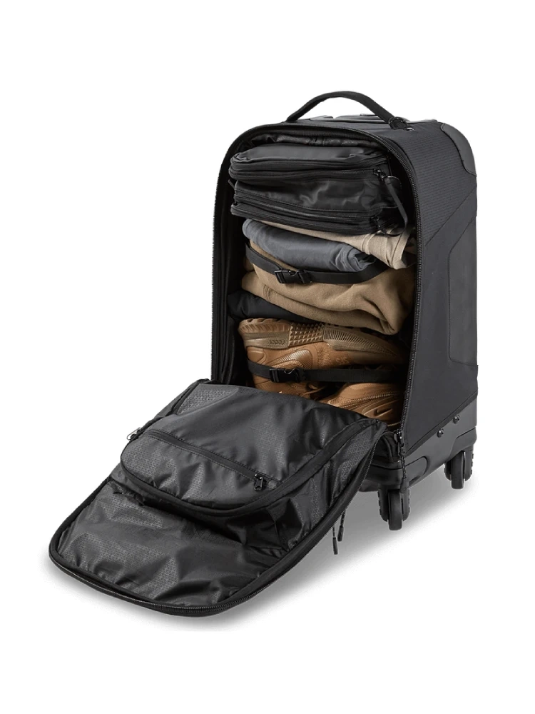 Przemyślany układ kieszeni i komór pozwala na efektywne organizowanie zawartości (przestronna komora główna z pasami kompresyjnymi, wyściełana kieszeń z siatkowym wkładem, zewnętrzne kieszenie, okienko na identyfikator), a zamki błyskawiczne TSA zapewniają łatwość obsługi i wygodny dostęp do przechowywanych przedmiotów.