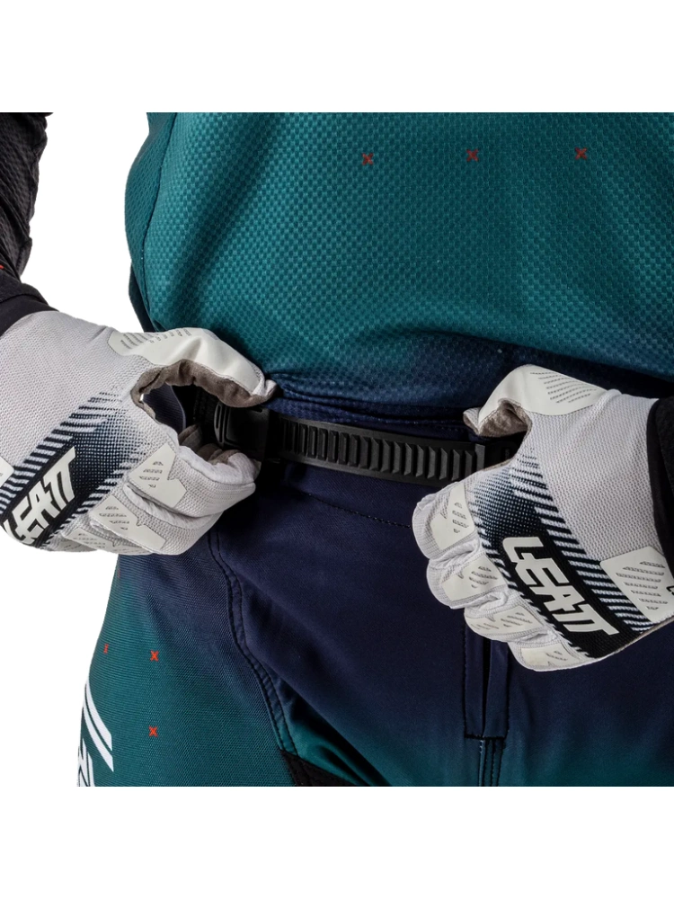 Spodnie Leatt Moto 4.5 to nowa, ulepszona wersja cenionego modelu, zaprojektowana z myślą o wymagających miłośnikach enduro i motocrossu. Aż 70% konstrukcji wykonano z elastycznego i niezwykle wytrzymałego materiału Twisted Yarn Stretch, co zapewnia swobodę ruchów oraz odporność na uszkodzenia. Wielowarstwowe panele skórzane umieszczone po wewnętrznej stronie łydek chronią przed wysoką temperaturą silnika i przetarciami, a elastyczne wstawki 900D dodatkowo zwiększają trwałość. Spodnie wyposażono w powłokę odporną na zabrudzenia, dzięki czemu łatwiej utrzymać je w czystości nawet w trudnych warunkach terenowych. System 360° Hypalon Waistlock skutecznie stabilizuje pas, zapobiegając przesuwaniu się odzieży w trakcie jazdy. O bezpieczeństwo dba także wzmocniona konstrukcja kolan 1200D, a zamek YKK z półautomatycznym blokowaniem gwarantuje pewne zapięcie. Dla jeszcze lepszej wentylacji spodnie wyposażono w laserowo wycinane perforowane wstawki, które poprawiają przepływ powietrza. Brak podszewki zapewnia lepsze dopasowanie i oddychalność, co czyni model Moto 4.5 świetnym wyborem na wymagające trasy.