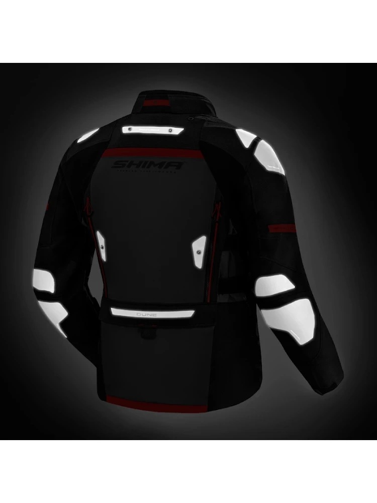Poznaj wszechstronność, wygodę i bezpieczeństwo w jednym produkcie – tekstylna kurtka motocyklowa Shima DUNE to idealny wybór dla miłośników motocykli, którzy pragną komfortu bez kompromisów. Dzięki trójwarstwowej konstrukcji, w skład której wchodzi warstwa bazowa, membrana NextDry™ i ocieplająca kamizelka, kurtka doskonale sprawdzi się w każdej pogodzie.