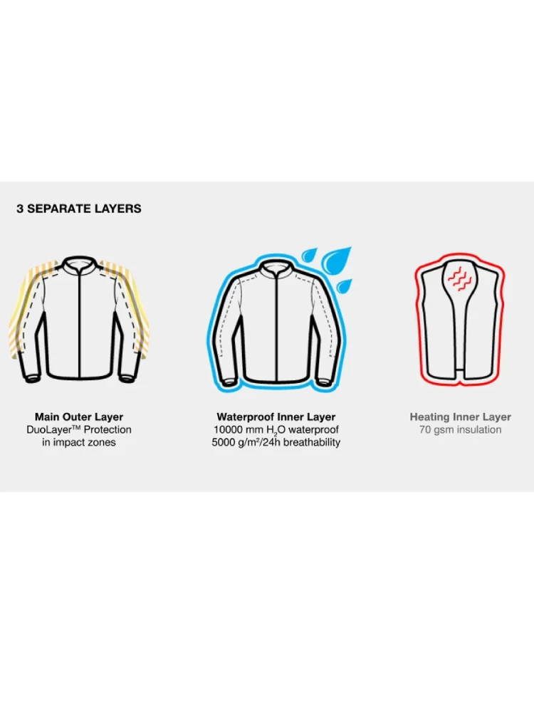 • Trójwarstwowa konstrukcja: powłoka zewnętrzna, wypinana membrana NextDry™ i kamizelka ocieplająca