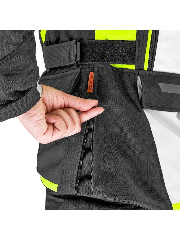 Komfort i funkcjonalność to kolejne atuty tej damskiej kurtki motocyklowej tekstylnej. Elastyczne panele, regulacje w talii, na ramionach i nadgarstkach, krótki i długi zamek, a także miękki neoprenowy kołnierz przekładają się na wygodę noszenia, nawet podczas wielogodzinnych podróży. Wodoodporne kieszenie cargo i wewnętrzna kieszeń umożliwiają zabranie drobiazgów, które zawsze warto mieć pod ręką. Stylowe wykończenie i praktyczne rozwiązania sprawiają, że Shima Dune to nie tylko ochrona, ale i elegancja na dwóch kołach. Sprawdź sama i poczuj różnicę, jaką daje idealnie dopasowana kurtka zaprojektowana z myślą o kobietach!