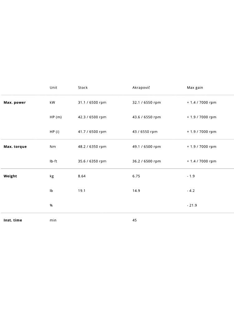 - Obniżona waga w porównaniu do oryginalnego układu wydechowego