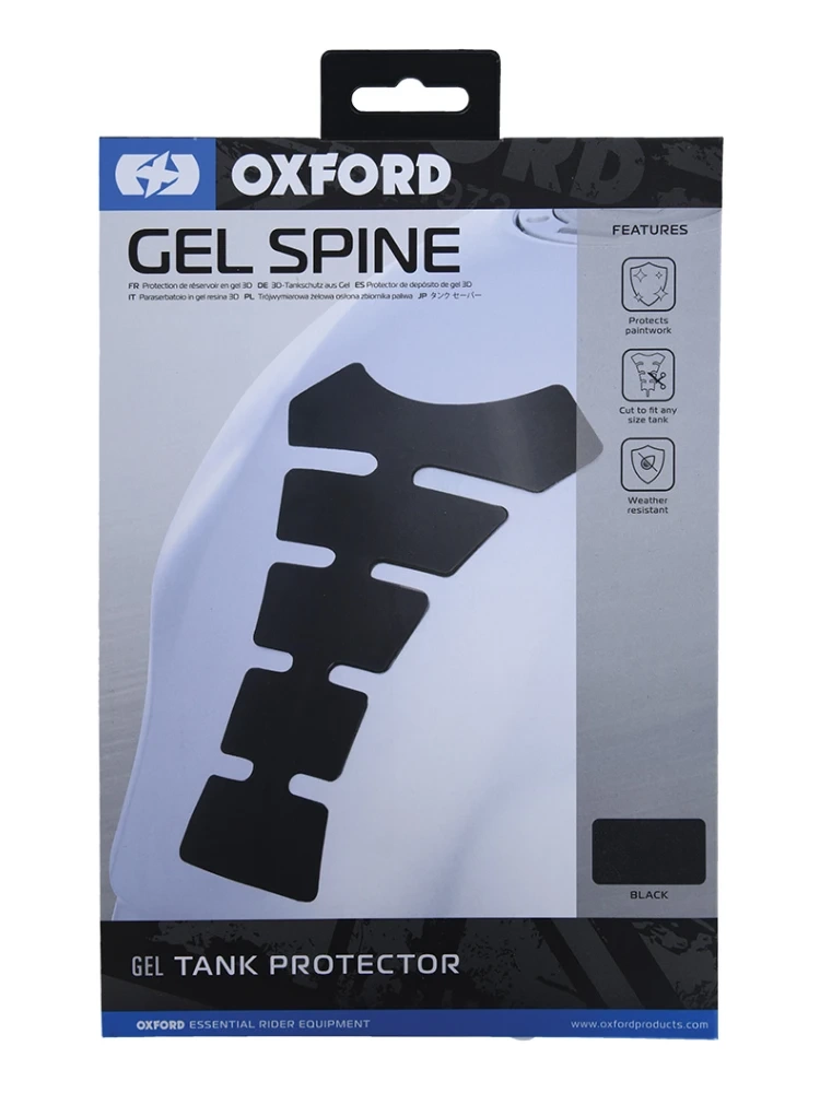 - Naklejka żelowa Oxford Gel Spine została zaprojektowana tak, aby skutecznie chronić zbiornik paliwa przed przypadkowymi uderzeniami i otarciami, niezależnie od tego, czy są one spowodowane odzieżą, klamrami, systemami bagażowymi czy pasażerem