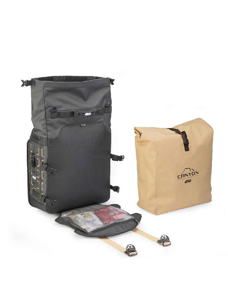 Komfort użytkowania podnosi sześć punktów kompresji ładunku oraz przestronna kieszeń wewnętrzna, które ułatwiają uporządkowanie bagażu. Co więcej, system M.O.L.L.E. na bokach sakw pozwala na przypięcie dodatkowych toreb akcesoryjnych, co pozwala rozbudować system o inne produkty z serii Canyon, takie jak np. model GRT730, idealny na narzędzia, zestaw pierwszej pomocy czy termosy z napojami.