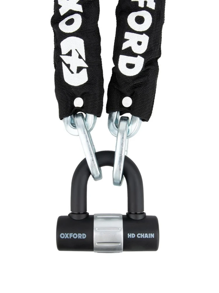 - Łańcuch do motocykla Oxford HD Chain Lock z kłódką wykonany z trwałej stali Cro-Mo oraz utwardzonej powierzchni