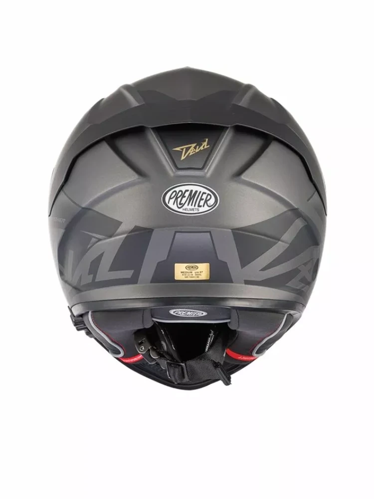 Premier Devil, to model dla motocyklistów poszukujących kasku integralnego, oferującego bezpieczeństwo i komfort użytkowania na wysokim poziomie. Produkowana w dwóch wielkościach skorupa kasku, została wykonana z opracowanego na bazie dwóch rodzajów włókien: węglowego i aramidowego oraz materiału Dyneema, kompozytu DCA i żywicy epoksydowej. Takie połączenie sprawia, że konstrukcja wyróżnia się lekkością i wytrzymałością. Wnętrze kasku zostało wypełnione hipoalergicznym materiałem, z którego wykonano wyściółkę. W aspekcie komfortu użytkowania warto również wspomnieć o piance EPS o zróżnicowanej gęstości. Za sprawą poliwęglanowego wizjera, który wzbogacono o filtr UV oraz przystosowano do wpięcia Pinlocka, kask integralny Premier Devil, gwarantuje szerokie pole widzenia w różnych warunkach pogodowych. Warto dodać, że kask posiada również wysuwaną blendę, która znajdzie zastosowanie podczas jazdy motocyklem w słoneczne dni. O wydajną cyrkulację powietrza, zwłaszcza w wysokich temperaturach zadba system wentylacji, składający się z rozmieszczonych strategicznie otworów wlotowych i wylotowych. Wewnętrzna część kasku została zaopatrzona w antybakteryjną wyściółkę, która jest w pełni wyjmowana i przystosowana do prania. Homologacja ECE 22.06 potwierdza, że kask integralny Premier Devil zaprojektowano i opracowano według europejskich norm bezpieczeństwa. Warto dodać, że konstrukcja kasku jest przystosowana do montażu opcjonalnego interkomu motocyklowego. Devil jest także przyjazny dla osób noszących okulary.