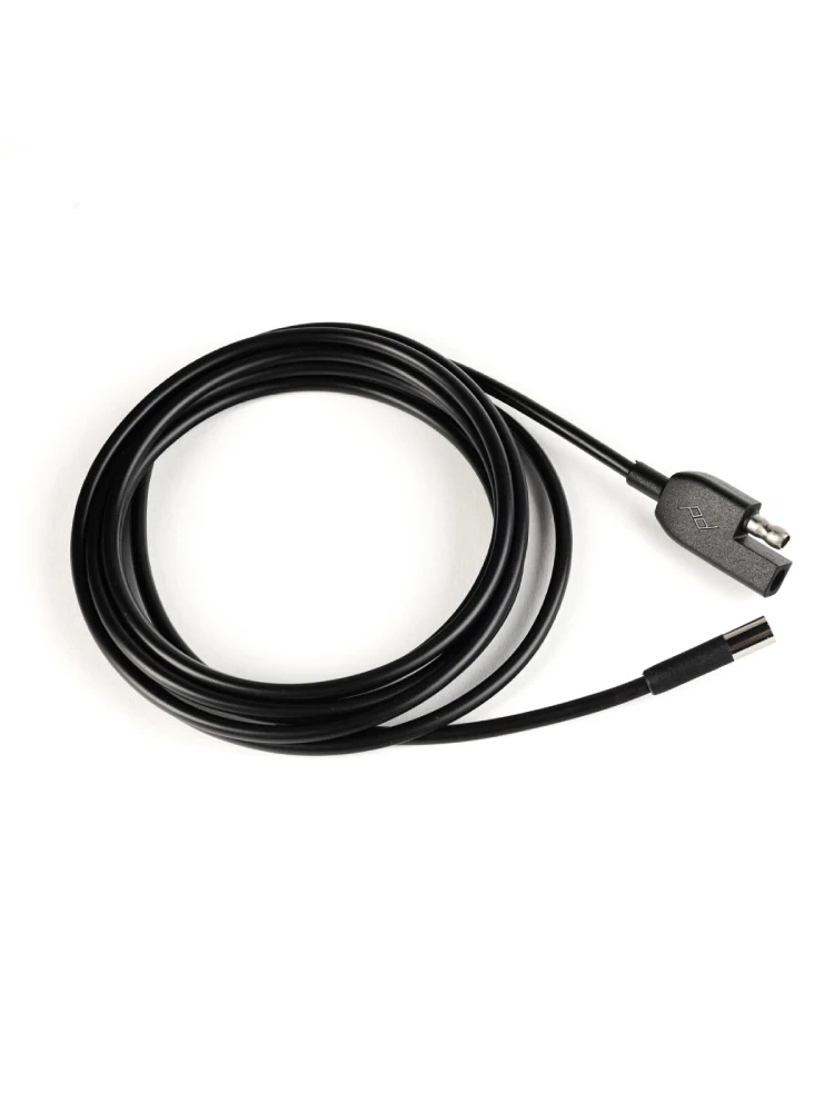 - Kabel łączy się z modułem ładowania w uchwycie motocyklowym Peak Design za pomocą niskoprofilowego złącza inline