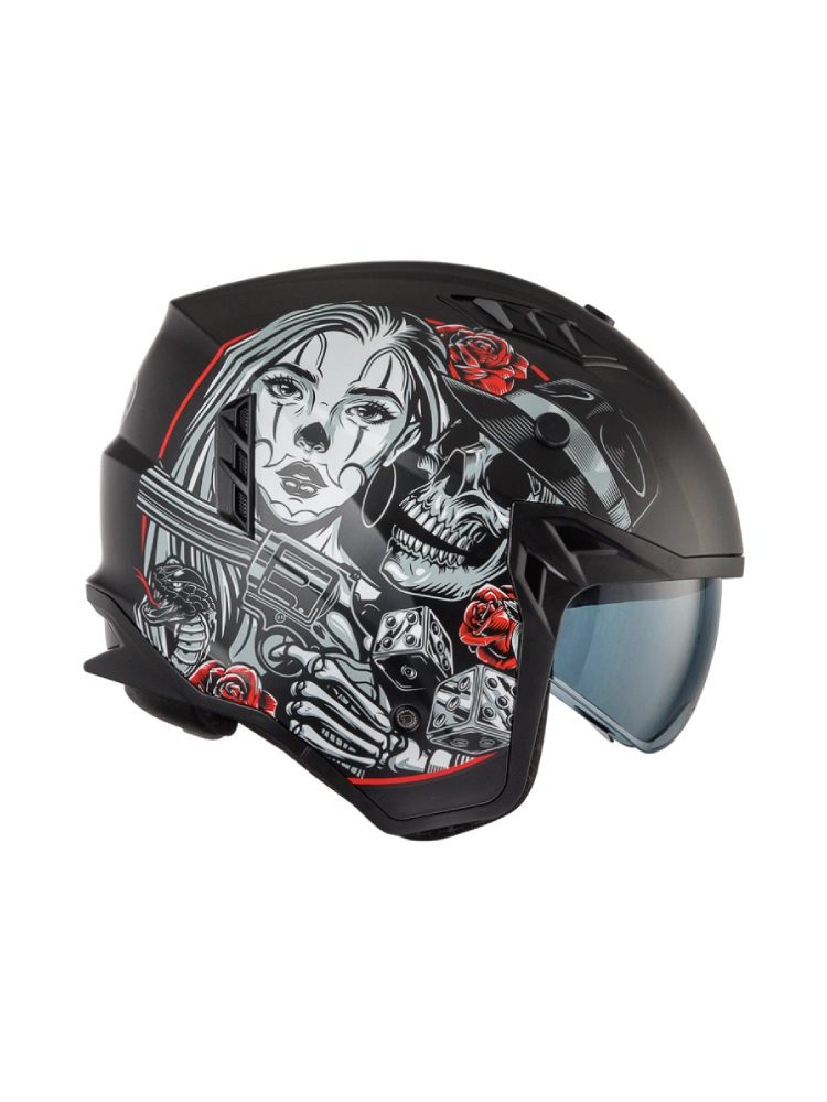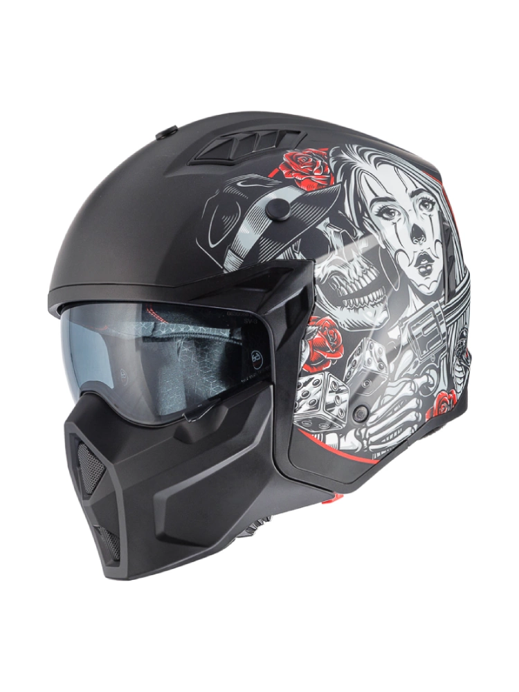 Za ochronę wzroku przed słońcem odpowiada zintegrowana blenda przeciwsłoneczna oraz wizjer pokryty powłoką z filtrem UV. Wizjer przystosowano również w specjalne piny umożliwiające instalację wkładki Pinlock, która ogranicza parowanie szybki w chłodniejszych warunkach atmosferycznych.