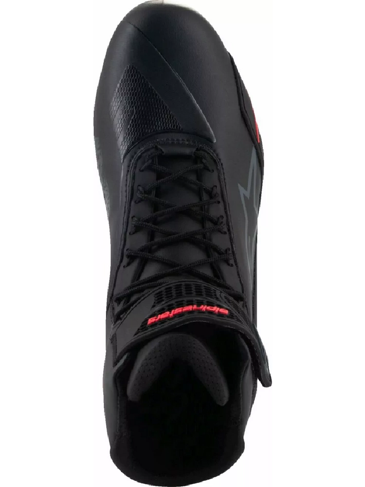 System tradycyjnego sznurowania z dodatkiem regulowanego paska z TPR i zapięciem na rzep umożliwia idealne dopasowanie, a nowa gumowa podeszwa z amortyzacją pięty zapewnia przyczepność i stabilność na każdej nawierzchni. Wyjmowana anatomiczna wkładka EVA pokryta Lycrą podnosi komfort chodzenia poza motocyklem.