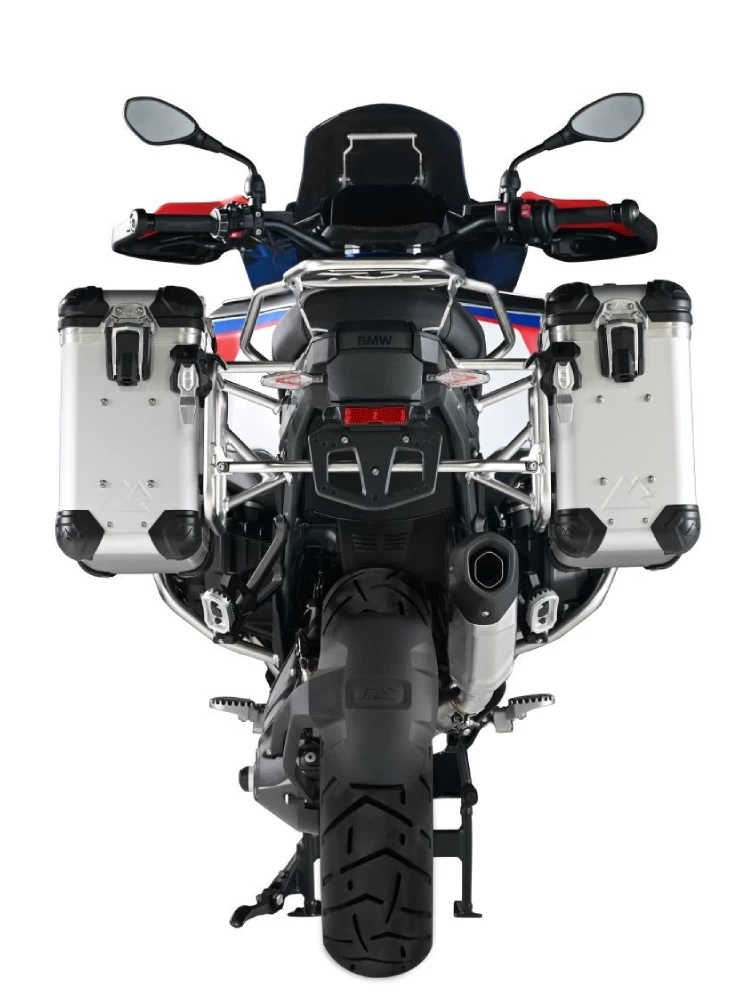 Zestaw: kufry boczne z anodowanego aluminium srebrne "And-S" Zega Evo + stelaże srebrne Touratech BMW R 1300 GS Adventure (24-) [31+31l]