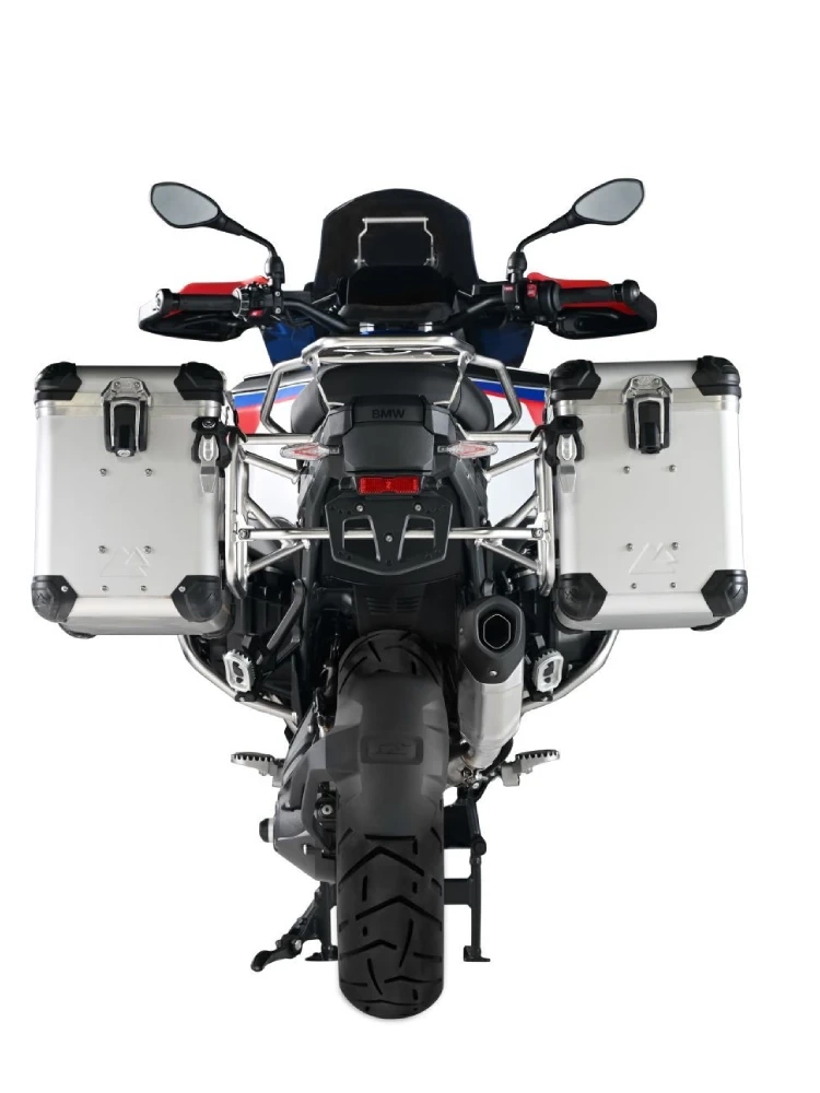 Zestaw: kufry boczne z anodowanego aluminium srebrne "And-S" Zega Evo + stelaże srebrne Touratech BMW R 1300 GS Adventure (24-) [45+45l]