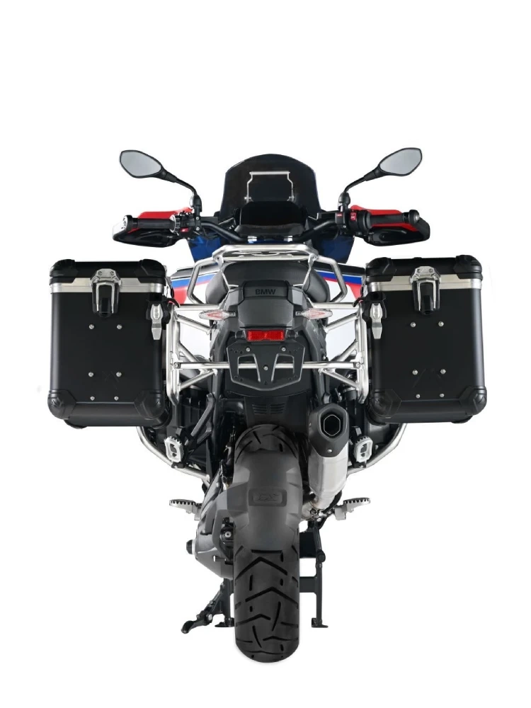 Zestaw: kufry boczne z anodowanego aluminium czarne "And-Black" Zega Evo + stelaże srebrne Touratech BMW R 1300 GS Adventure (24-) [45+45l]