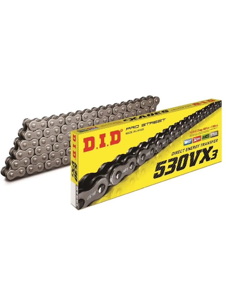 Łańcuch napędowy motocyklowy D.I.D. 530VX3 X-Ring [otwarty z zakuwką; 114 ogniw]