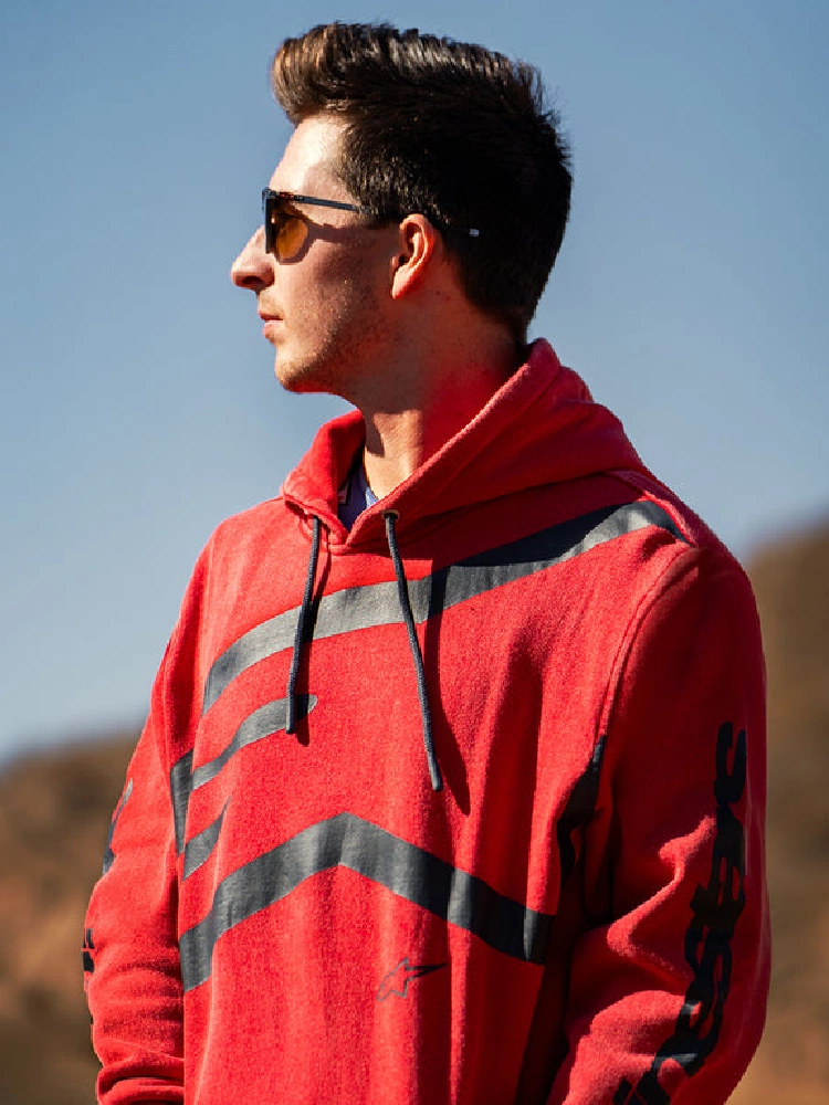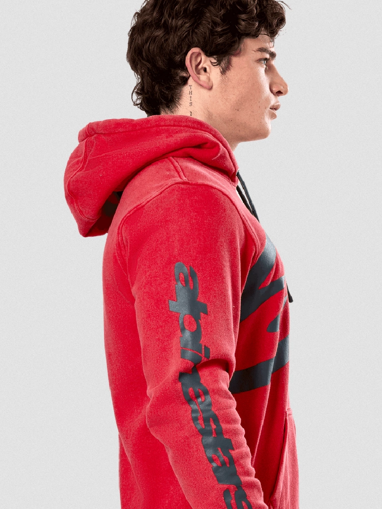 Bluza Alpinestars Unbound to klasyczny model typu pull-over, wykonany z mieszanki 80% bawełny i 20% poliestru z recyklingu. Zastosowanie technologii garment dye nadaje jej charakterystyczny wygląd, uzyskany poprzez barwienie gotowego produktu. Na froncie znajduje się duże logo marki, a rękawy ozdobiono napisami Alpinestars. Bluza została wyposażona w wygodną kieszeń typu kangur oraz kaptur z podszewką z tego samego materiału. Regulację kaptura umożliwiają sznurki z wykończeniem typu dipped. Komfort noszenia zapewniają ściągacze przy mankietach i u dołu bluzy. Całość uzupełniają wewnętrzna metka główna oraz zewnętrzne oznaczenia marki.