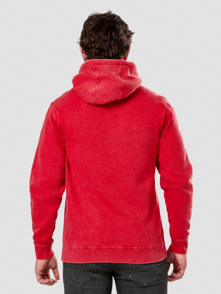 - bluza typu pull-over z kapturem, wykonana metodą garment dye (barwiona po uszyciu),