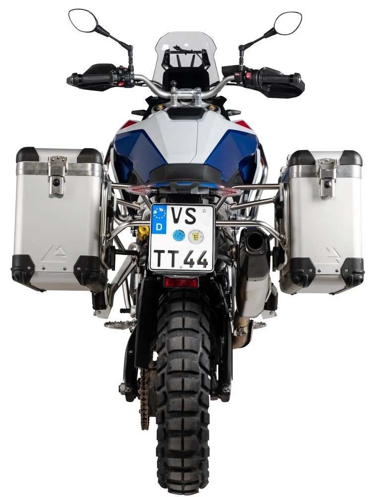 Zestaw: kufry boczne srebrne "And-S" Zega Pro + stelaże srebrne Touratech BMW F 900 GS (24-) [poj.: 31+38l]