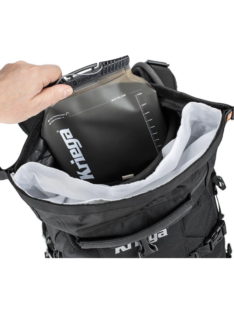 - wodoodporna komora główna Drypack o pojemności 20 litrów z rolowanym zamknięciem i wyjmowaną białą wkładką z podklejanymi szwami – ułatwia lokalizację zawartości i czyszczenie,