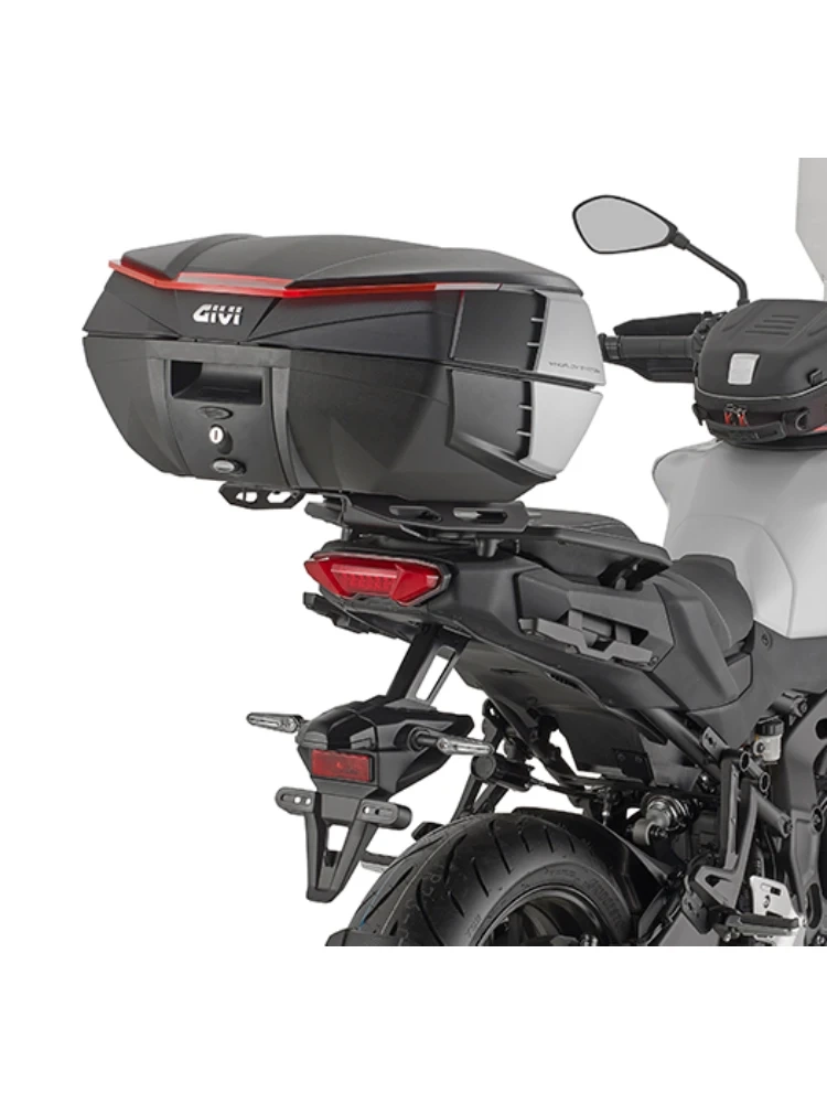- Stelaż marki GIVI umożliwiający zamocowanie kufra centralnego na motocyklu.