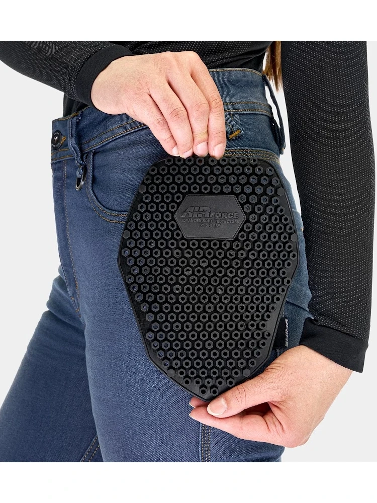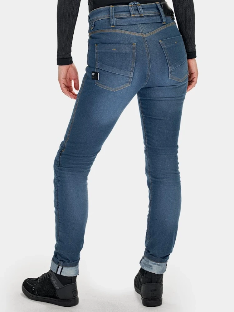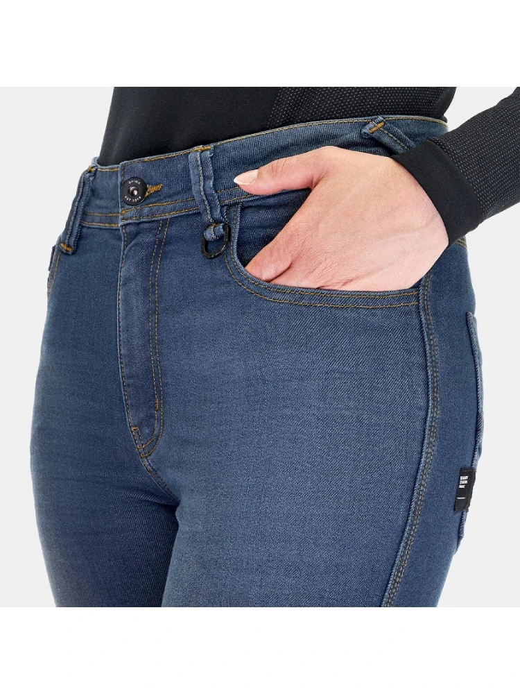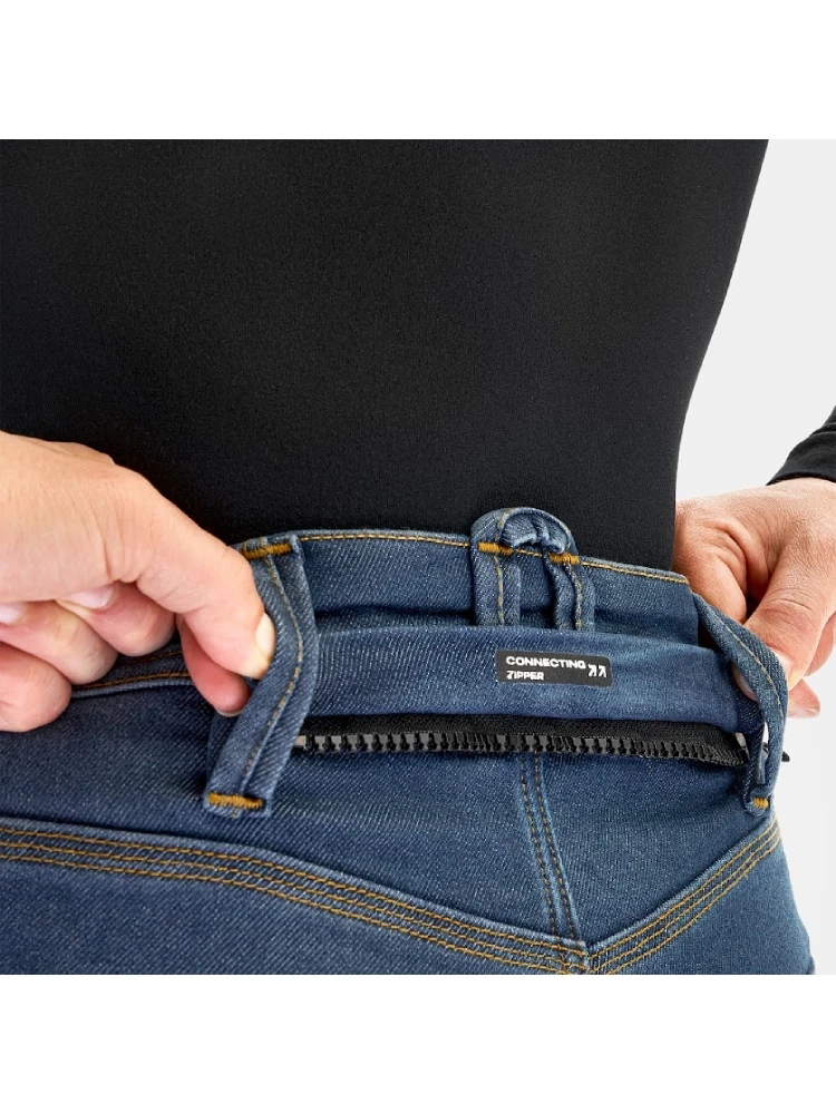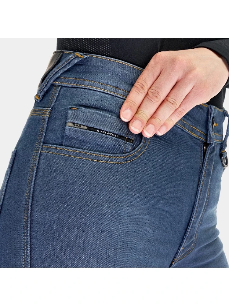 Dopracowane detale, takie jak odblaskowe elementy, krótkie zapięcie do kurtki, funkcjonalna pętla montażowa oraz uchwyt D-Loop, sprawiają, że te jeansy motocyklowe damskie łączą funkcjonalność z nowoczesnym wyglądem. To niezawodny wybór na każdą trasę – zarówno miejską, jak i turystyczną.