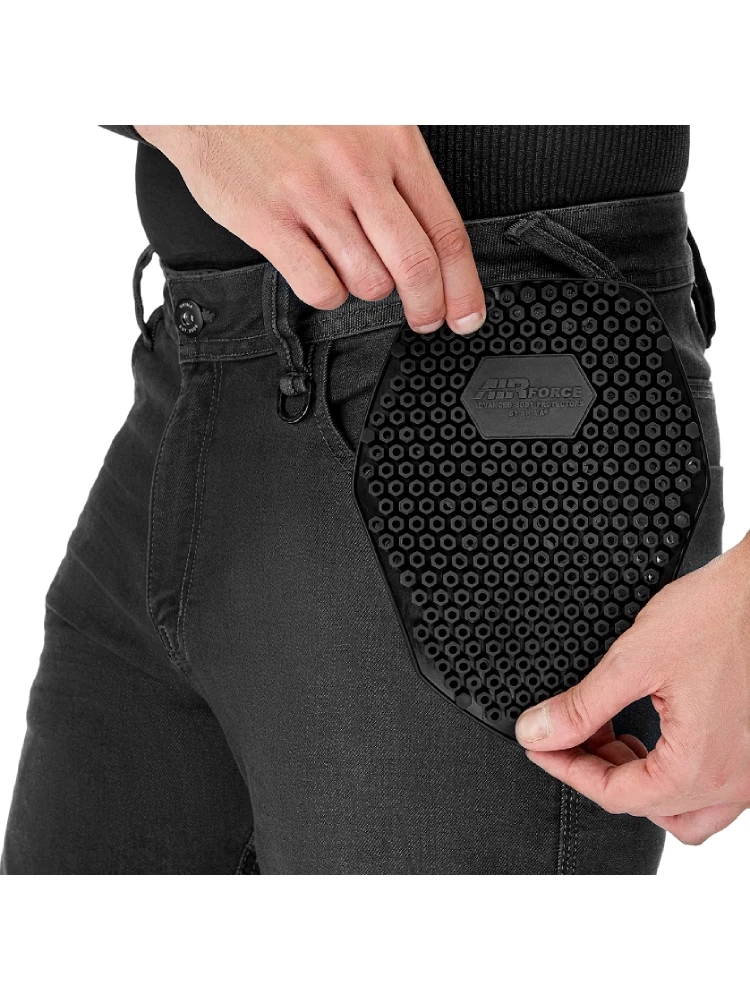 Jeśli szukasz idealnego połączenia bezpieczeństwa, komfortu i stylu, jeansy motocyklowe Shima Ridge to rozwiązanie, które sprosta Twoim wymaganiom. Wykonane z wytrzymałego materiału Cordura®, słynącego z odporności na przetarcia, oferują certyfikowaną ochronę klasy AAA, co sprawia, że są gotowe na każdą trasę. Dzięki innowacyjnej technologii DuoLayer Protection™, kluczowe miejsca, takie jak kolana i biodra, są dodatkowo zabezpieczone wielowarstwowymi strefami ochronnymi. Atestowane protektory GFLEXX (kolana, poziom 2) oraz AirForce (biodra, poziom 1) zapewniają najwyższy poziom ochrony, a ich regulowane położenie pozwoli na idealne dopasowanie.