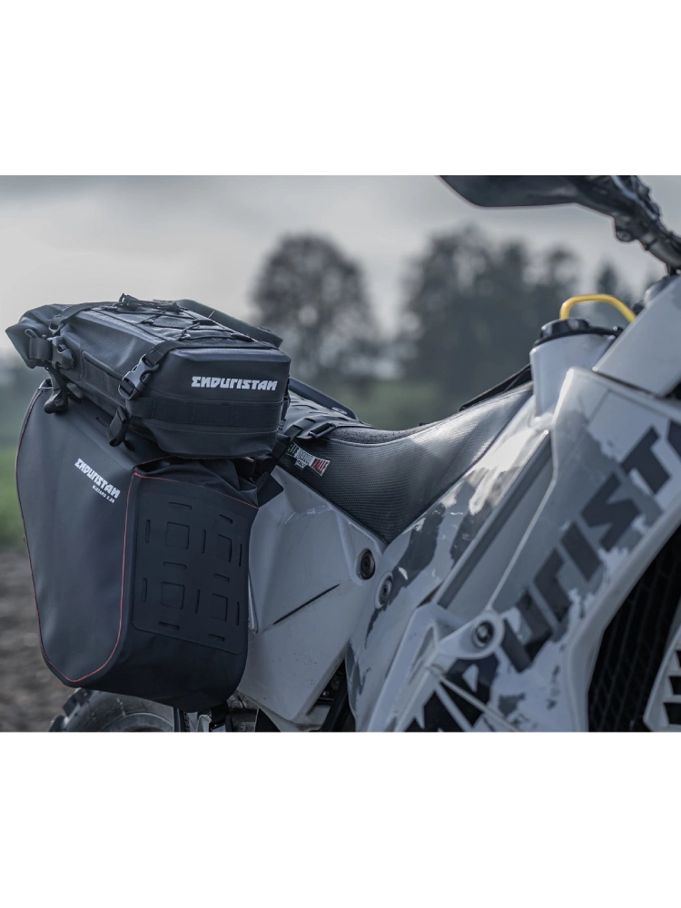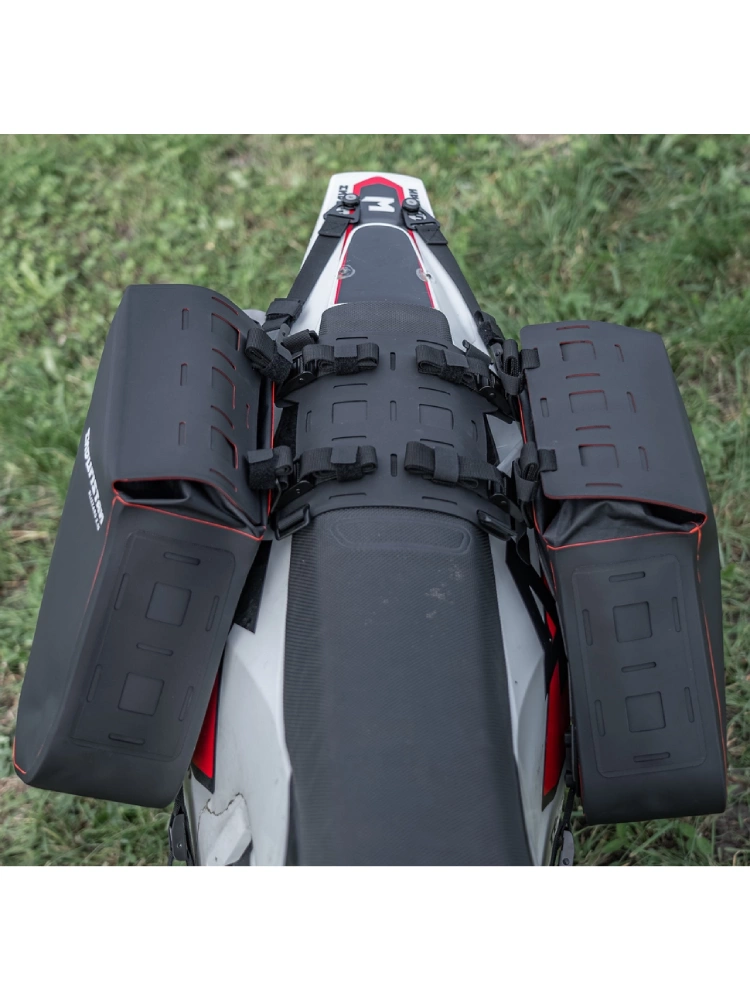 Sakwy mają w sumie siedem punktów mocowania dodatkowego bagażu, np. toreb XS Base Pack, Bottle Holster lub Can Holster. Trzy punkty znajdują się na każdej sakwie, a jeden na siedzisku – jego płaska konstrukcja nie przeszkadza w jeździe i pozwala zabrać pasażera, o ile nie zamocowano dodatkowych toreb.