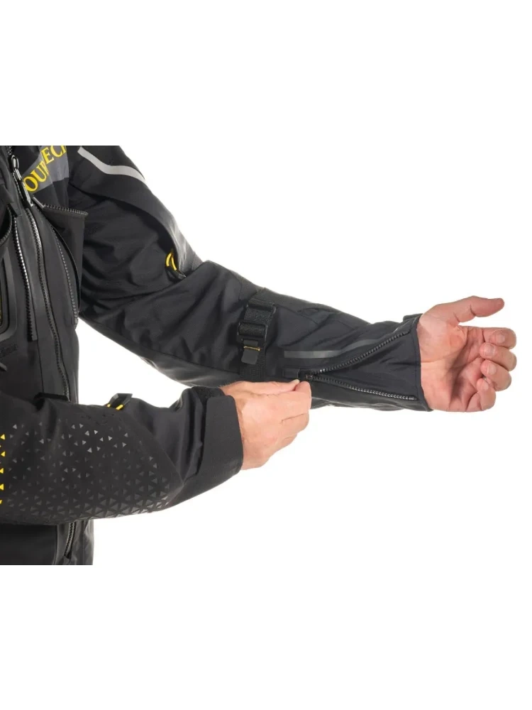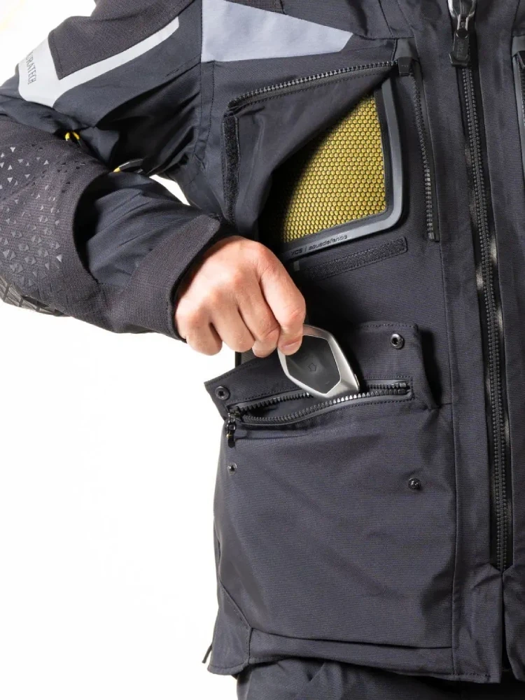 System wentylacji VCS Aquadefense z magnetycznym zamknięciem Fidlock umożliwia szybką i wygodną regulację dopływu powietrza podczas jazdy. Zamek wentylacyjny na całej długości klatki piersiowej, otwory w górnej części ramion, na rękawach i plecach pozwalają zachować przyjemny mikroklimat nawet podczas długich wypraw. Odpinany, neoprenowy kołnierz oraz wewnętrzna kurtka z laminatu Hydratex® Windbarrier® pełnią funkcję ochrony termicznej w chłodniejszych warunkach. Dodatkowe kieszenie – wodoodporne z przodu i z tyłu, wewnętrzne oraz te w pasie nerkowym – umożliwiają praktyczne rozmieszczenie najważniejszych drobiazgów.