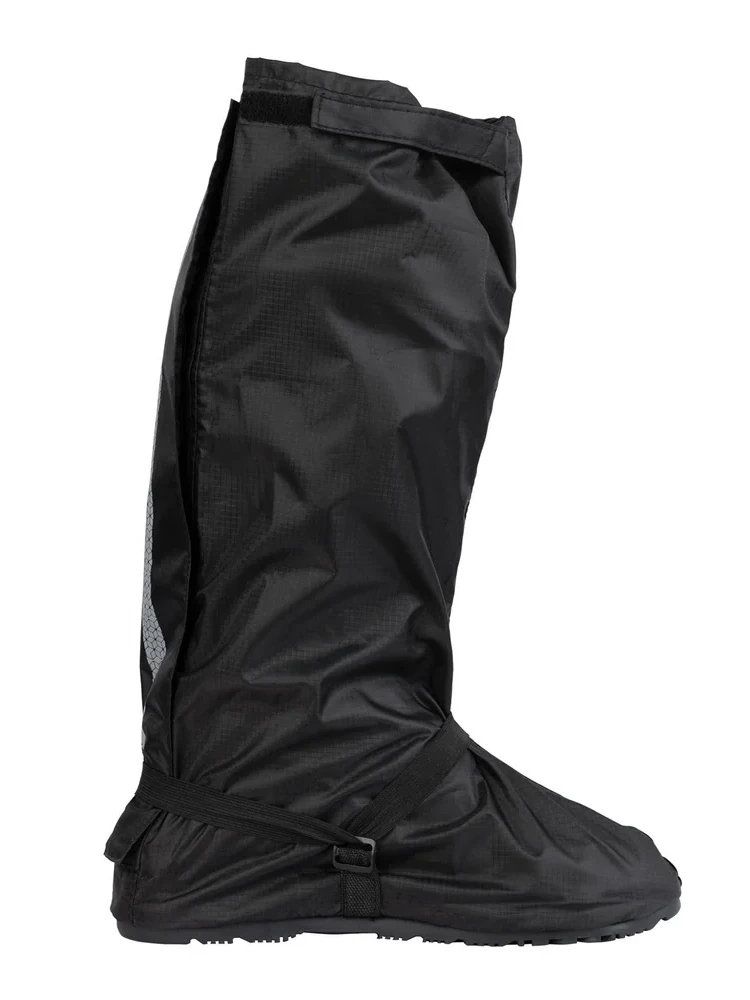 Wykonane z trwałego materiału Ripstop, nakładki są odporne na codzienne zużycie i intensywne użytkowanie. Tylne zapięcie na zamek błyskawiczny, zabezpieczone patką, oraz klejone szwy zapewniają dodatkową ochronę przed wodą, a elastyczna, gumowa podeszwa gwarantuje komfort podczas chodzenia i pewny kontakt z podłożem. Szczególnym atutem jest wzmocnienie na lewej stopie, które świetnie sprawdza się podczas zmiany biegów, chroniąc jednocześnie obuwie przed uszkodzeniem.