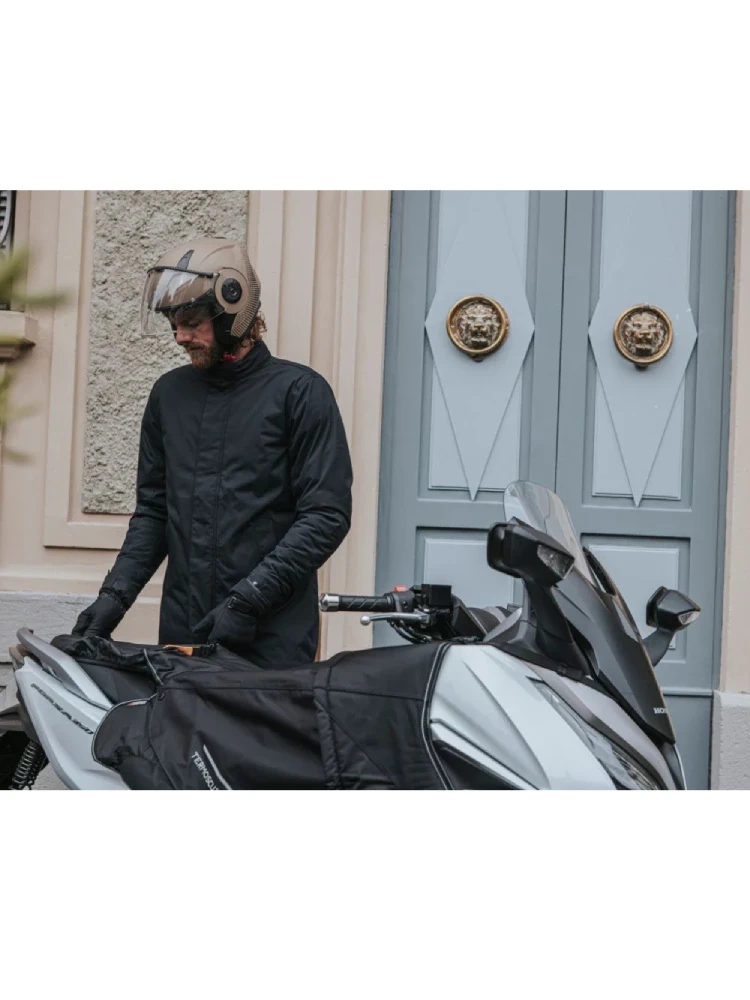 To nie tylko osłona na nogi – to inteligentna ewolucja klasycznego pokrowca Termoscud®, zaprojektowana z myślą o maksymalnej wygodzie w każdych warunkach. Termoscud® Pro wykorzystuje zaawansowany system 4 Season, który pozwala korzystać z jednego pokrowca przez cały rok – bez potrzeby montowania i zdejmowania go wraz ze zmianą pór roku. Zimą chroni przed mrozem, deszczem i wiatrem. A latem? Wystarczy odpiąć ocieplaną warstwę, by zostawić na skuterze tylko zintegrowany sztywny spoiler, z którego w każdej chwili możesz wysunąć awaryjną pelerynę przeciwdeszczową i pokrowiec na siedzenie. Wszystko jest tam, gdzie go potrzebujesz – bez kombinowania.
