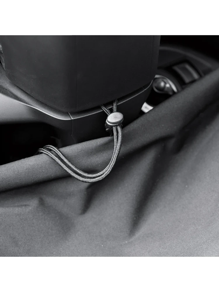 Pokrowiec został wyposażony w zintegrowany pokrowiec na siedzenie, który można wygodnie schować w fartuchu, gwarantując pełną ochronę Twojego skutera przed zmiennymi warunkami atmosferycznymi. Elementy odblaskowe zwiększają Twoją widoczność na drodze, co szczególnie docenisz w miejskim zgiełku lub podczas jazdy w nocy. Dolna krawędź z wkładką z pianki poliuretanowej zapewnia solidne dopasowanie, niezależnie od modelu skutera, na którym jeździsz.